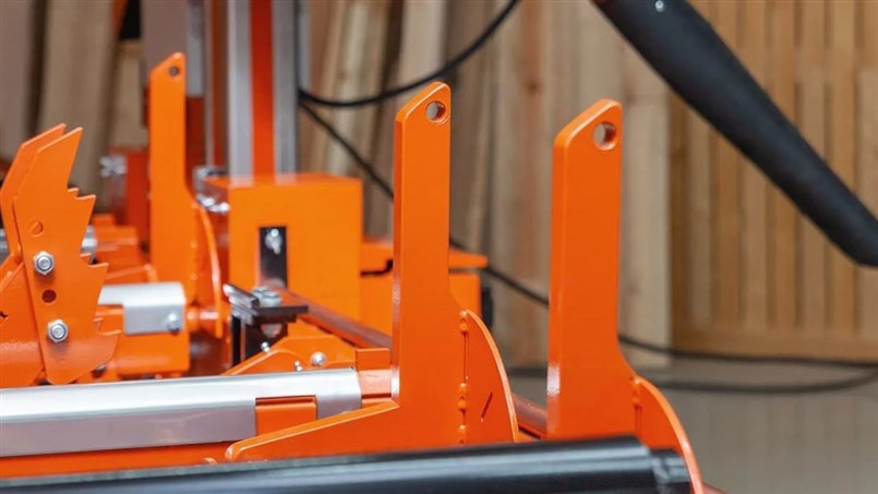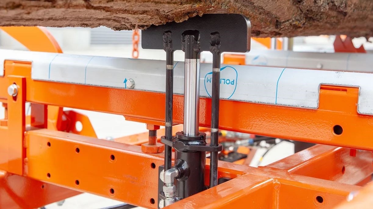 Hydrauliska lyftarm som enkelt lyftar upp stocken på sågbänkarna.