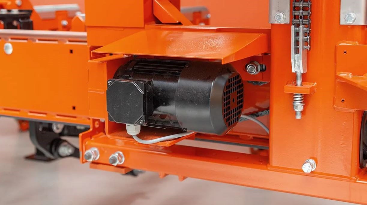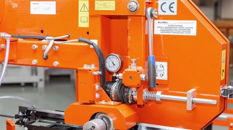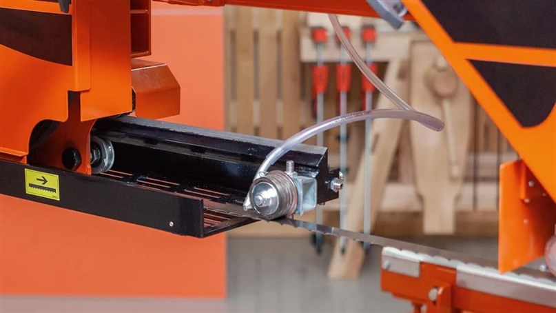 Den rörliga bandstyrningen regleras enkelt med en knapp på manöverpanelen, det gör att du enkelt kan reglera den optimalt vid sågning av koniska stockar.