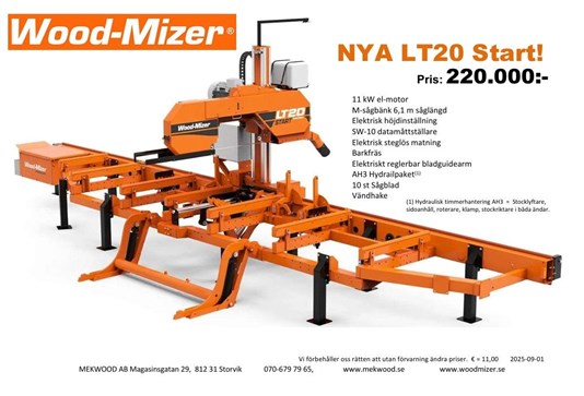 Vi har Wood-Mizer sågverk och snickerimaskiner i lager.