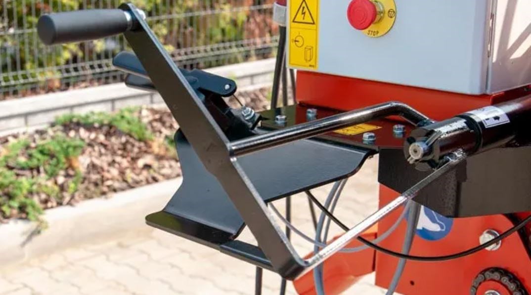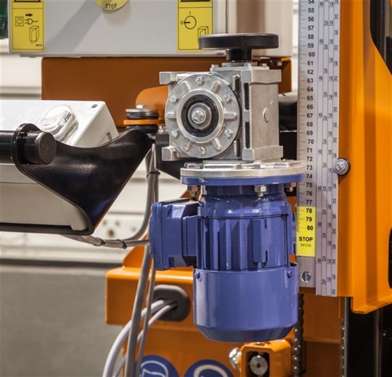 Sågverket är försett med en höjdinställning med en manuell vev för att placera sågbladet i rätt läge för nästa skär.