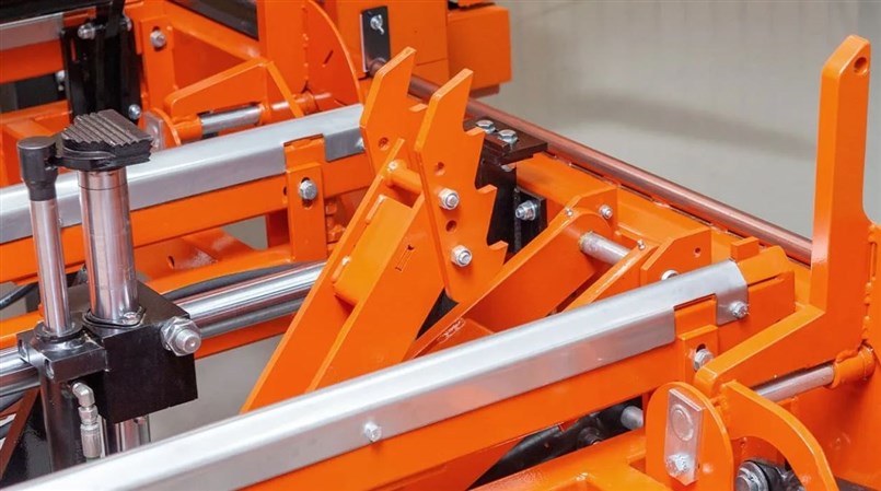 Hydrauliska lyftarm som enkelt lyftar upp stocken på sågbänkarna.