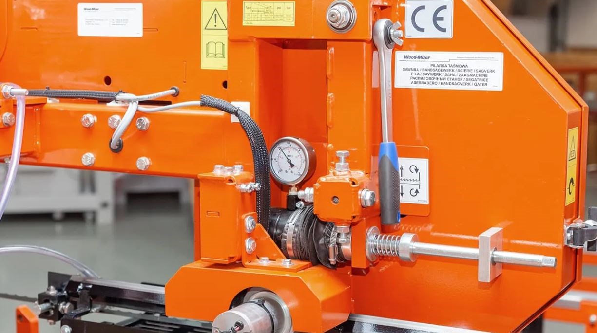 Bandspänningen regleras med en hydraulisk bandspänning med tryckmätare och vred.